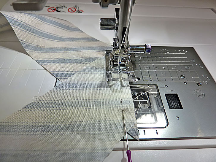 - Using a ¼” seam allowance, stitch together. This forms the bottom row.