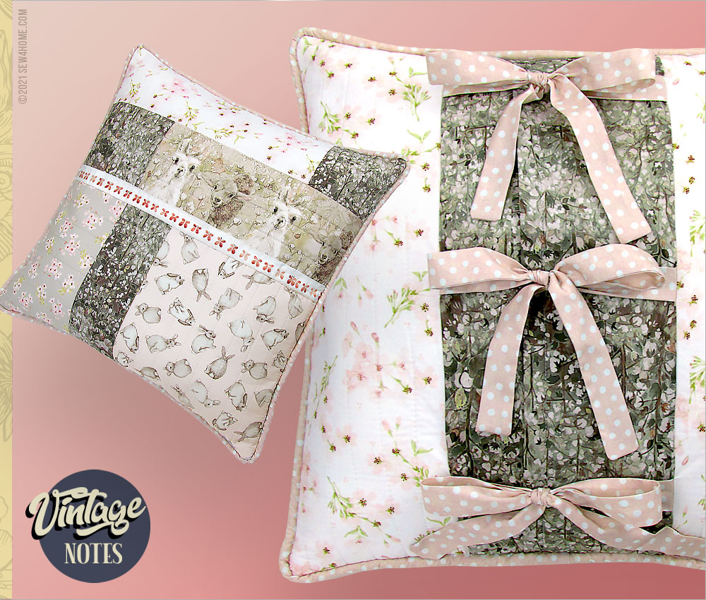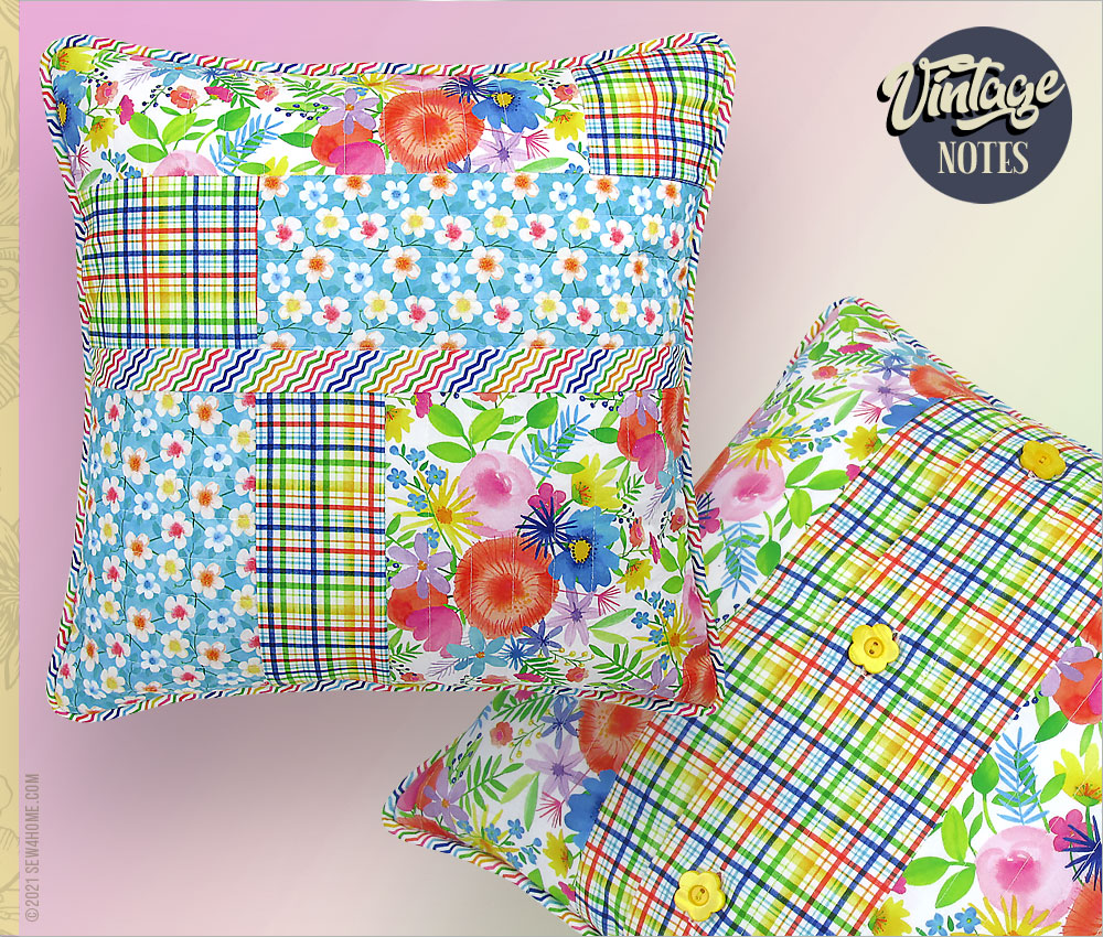 Our pillow design is based on a classic four-row grid that allows you to mix and match a wide variety of fabrics from within a favorite collection. There are so many great techniques to learn or practice, like fussy cutting tips to isolate and showcase a fabric’s motifs, basic piecing, how to make and attach bias piping, all the steps for an envelope back with a button and buttonhole closure plus a special side bar with steps for an alternate tie closure. Along the way, we sprinkle in other helpful tips and tricks that will take your sewing skills to the next level.