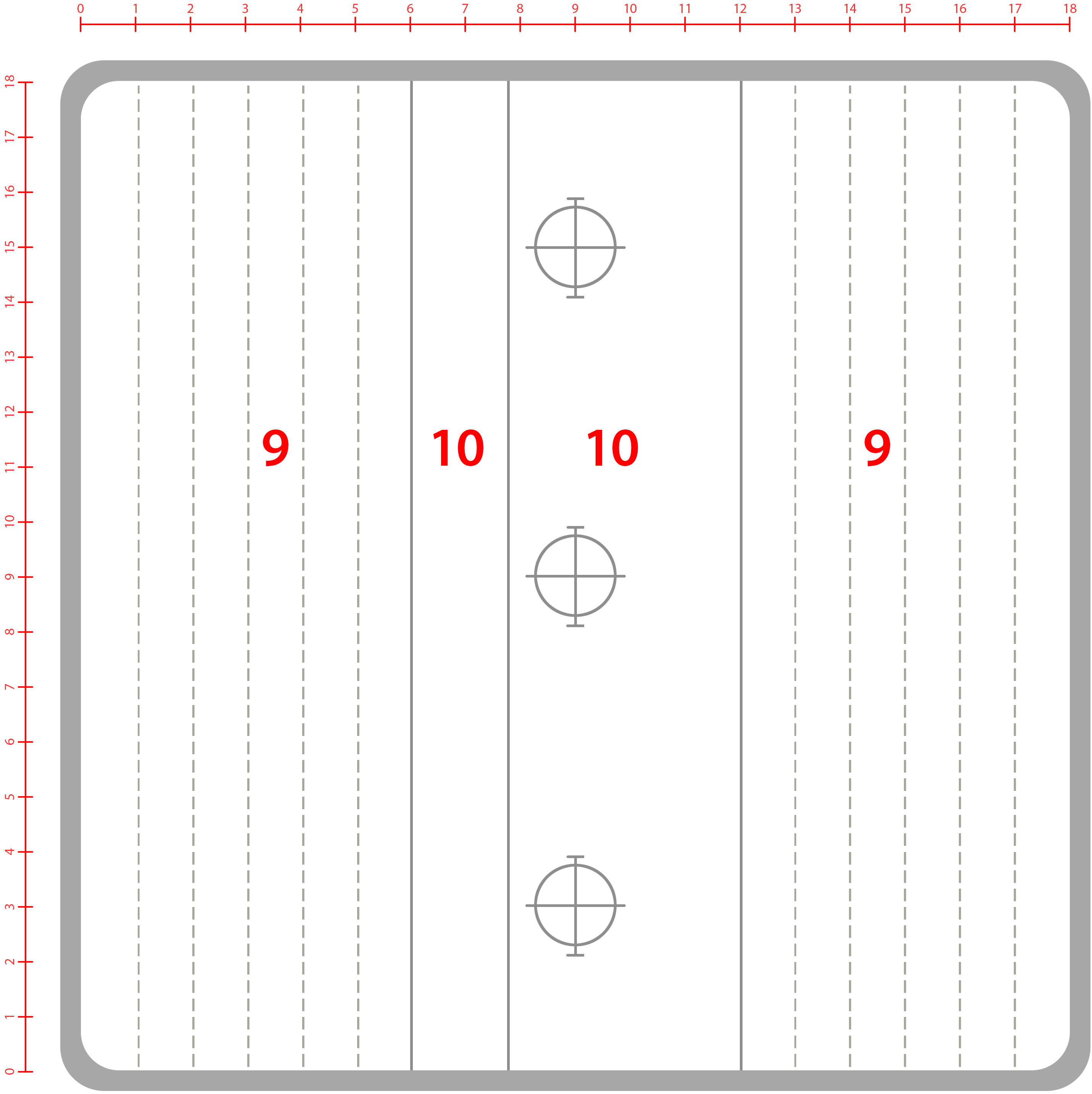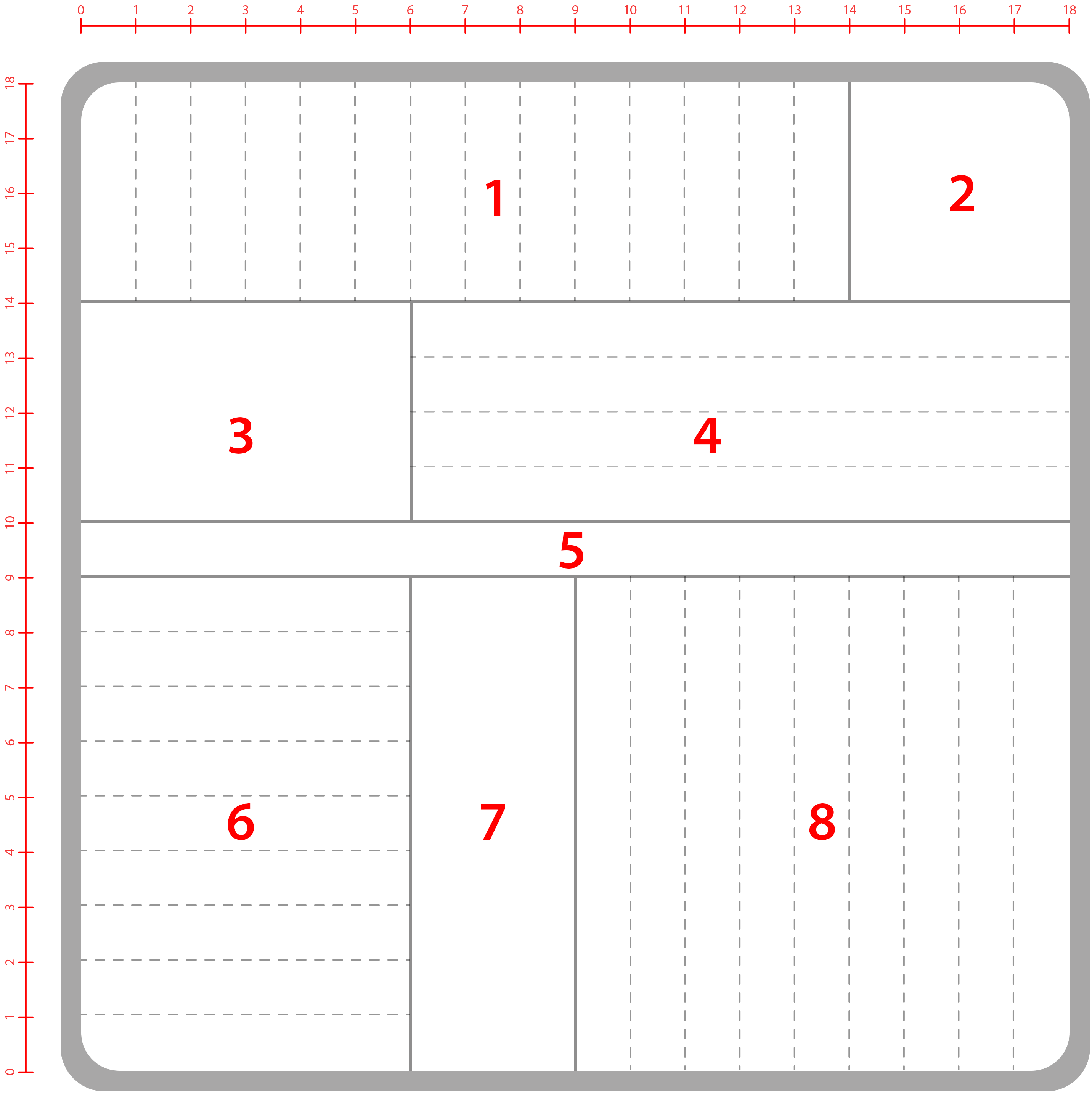 - Use the same method as above on the front panel to add 1” spaced vertical quilt lines within each grid section 9. Refer to the grid drawings above if needed. There is no quilting within the button overlap panels.