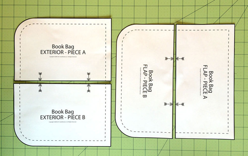 - Download and print the FOUR pattern pieces: Exterior Pattern A, Exterior Pattern B, Flap Pattern A, and Flap Pattern B. These four pieces have been bundled into ONE PDF to make the download easier