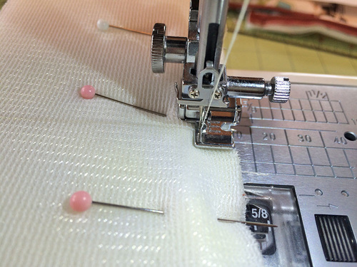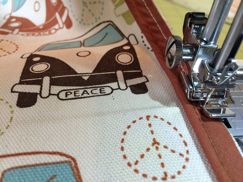 NOTE: As above, you could also use a Even Feed or Walking foot, or engage your machine’s built-in fabric feeding system, since you are stitching through several layers plus the thick foam.