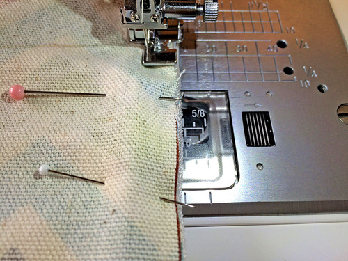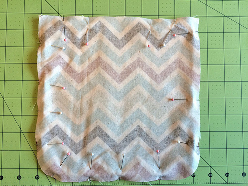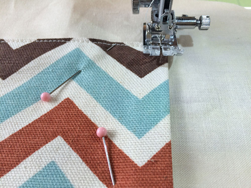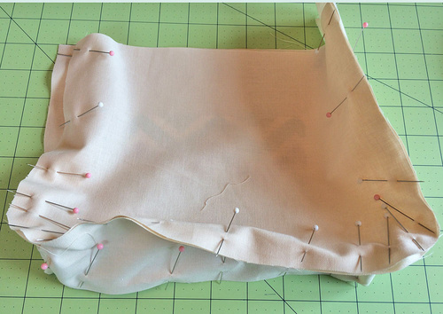 - Pin in place along both sides and across the bottom. Leave an approximate 3″ opening along the bottom for turning.
