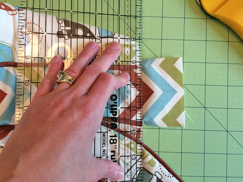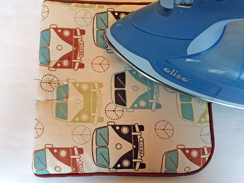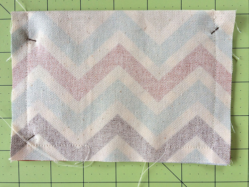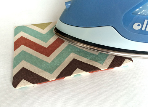 - Turn the pocket right side out through the opening. Gently push out the corners so they are nice and sharp. Press flat, pressing in the raw edges of the opening so they are flush with the sewn seam.