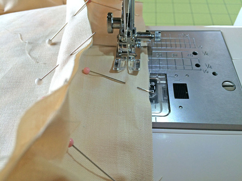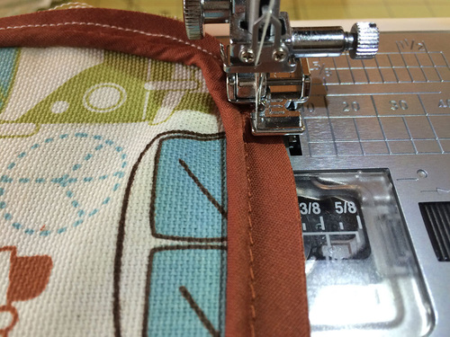 NOTE: As above, this seam allowance may vary slightly as the goal is to stitch right along, but not on, the piping.
