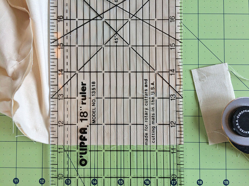 - ½ yard of 44″+ wide quilting weight cotton for the bag lining; we originally used 44″ Kona Cotton in Natural