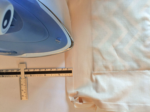 - We also added a line of topstitching ¾” down from the top folded edge to simulate a top hem. This is optional.