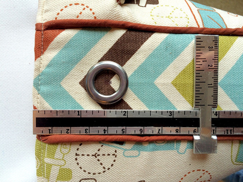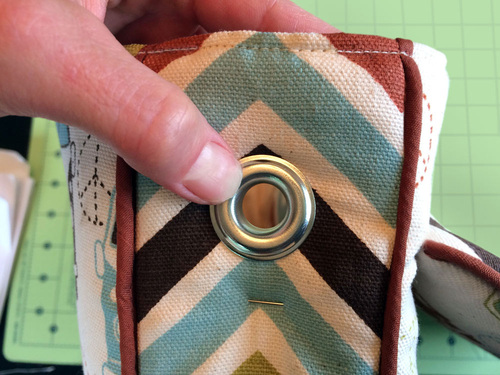 - Following the manufacturer’s instructions or our own Sew4Home How To Install Metal Grommets tutorial, insert each grommet.