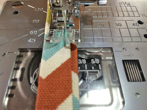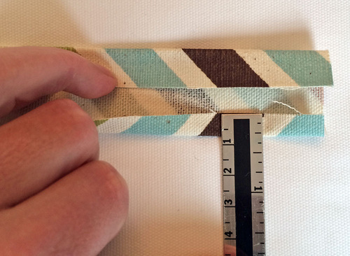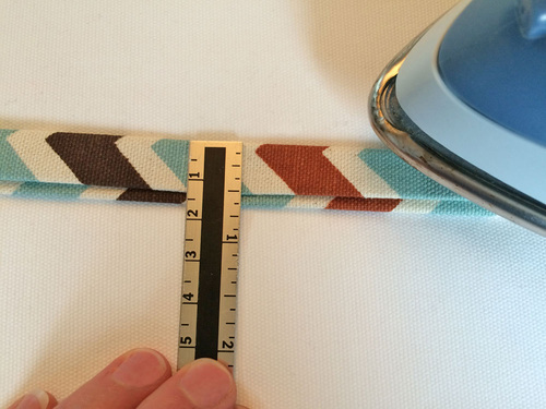 - Lap the ¼” folded edge over the ½” folded edge and press flat, forming a ⅝” wide strap (with an off-set lap) that is finished on all sides. This process is the same for both lengths.