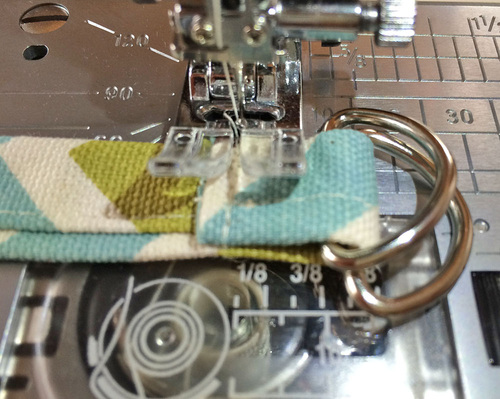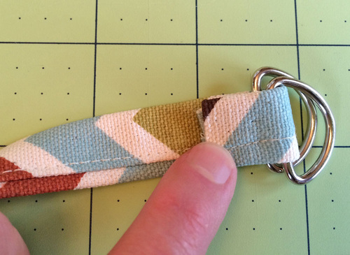 - Stitch across to secure this end in place, running the seam as close as possible to the D-rings.