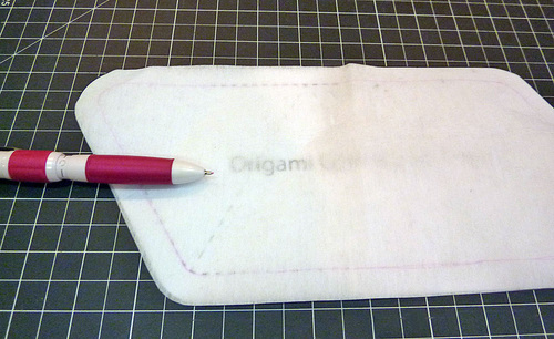- Using the pattern, cut ONE from the fusible interfacing. The interfacing should be fusible side down and the pattern should be right side up.