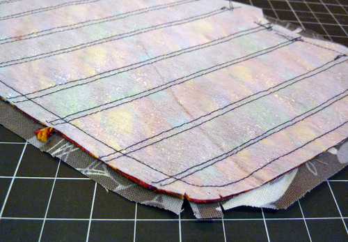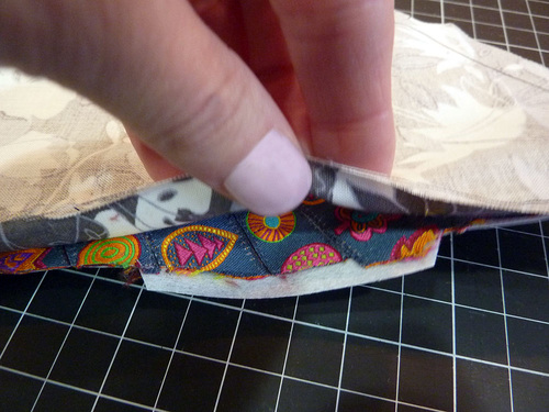 - At the corners, also trim back the fabric side of the seam allowance and clip to ease the curved seam.
