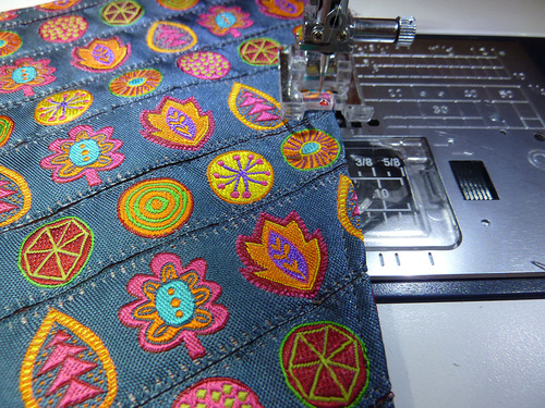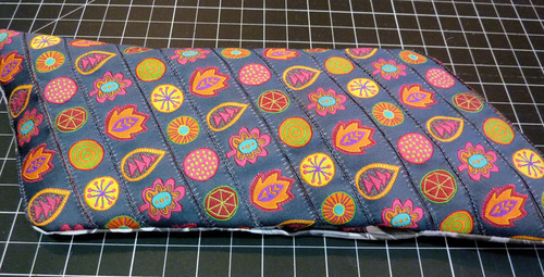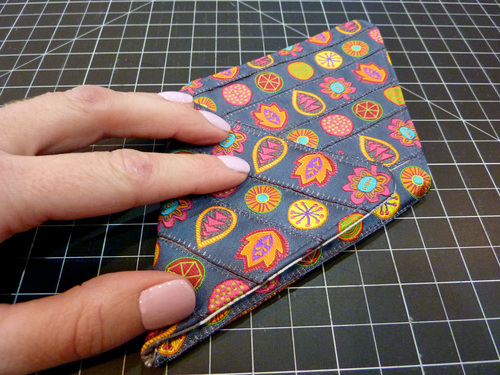 - Edgestitch all the way around the perimeter, adding an edge detail that also helps keep the layers very flat. This seam also closes the opening used for turning.