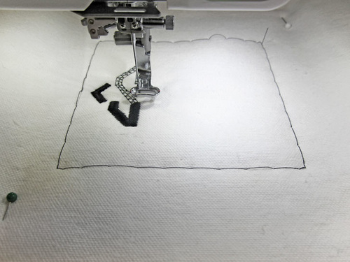 - Thread the machine as required for your monogram and stitch. Our monogram was stitched in two colors to simulate the Sew4Home logo. A single color monogram would also be very striking.