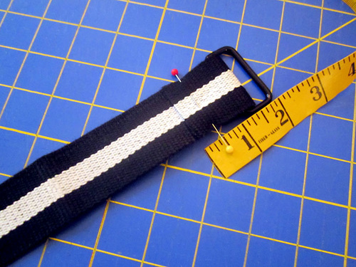 - 3 yards of 1½” Belting/Strapping; we used two packages of Dritz 1½” belting in a black and white stripe