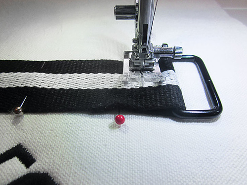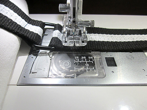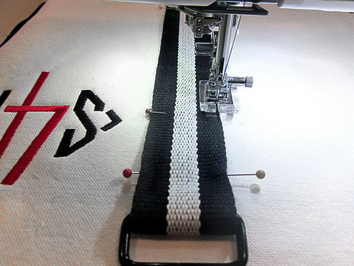 - Stitch across the Belting twice to secure. Once across as close as possible to the Rectangle Ring and a second time ½” from this first line.