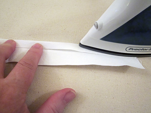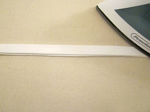 - Find the remaining bias binding tape. Keep it as one continuous length.