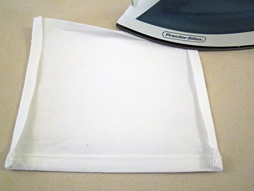 - Press back the sides and bottom raw edges of the pocket panel ½”.