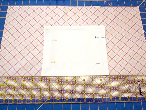 - The fusible foam should sit against the wrong side of the exterior base panel so there is ½” of fabric showing beyond the foam on all sides.