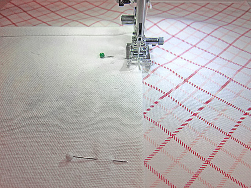 - To start simply pin a side panel right sides together with a main panel.