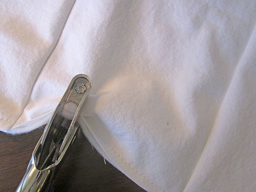 - Mark the center points of the bottom raw-edged opening of the tube in the same manner, finding the center points of the front, back, and both side sections.