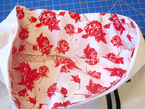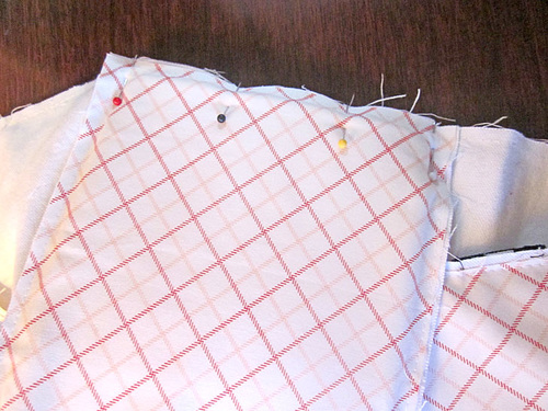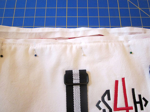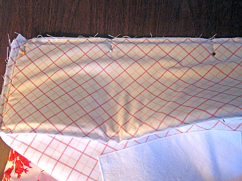 - Pin and stitch in place just as you did on the front panel.