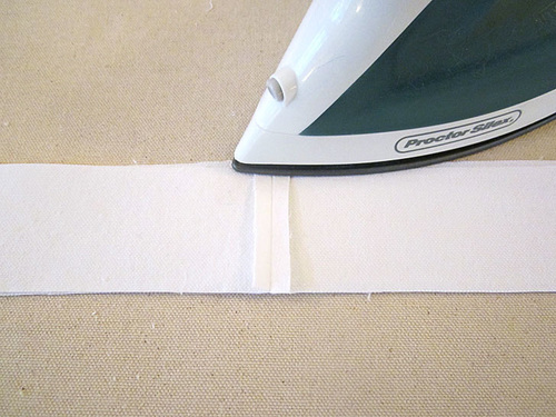 - Fold in half along the original crease line, sandwiching the raw edges within the folds. Press well.