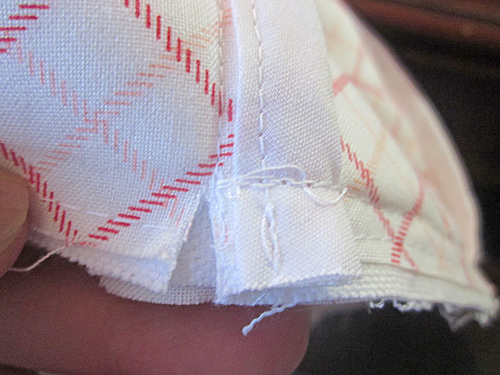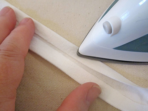 - As you did above when finishing the interior side seams, open and wrap the bias tape around the seam allowance. If you find the tape is not fitting as well as it should, you can trim back the seam allowance just slightly.