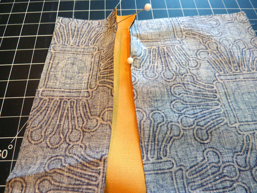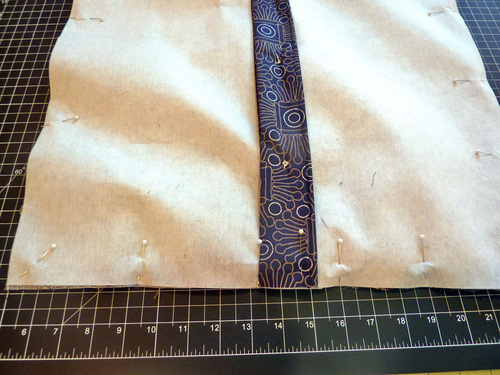 - Place the first two pieces right sides together. Pin along one 19″ side.