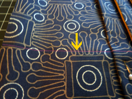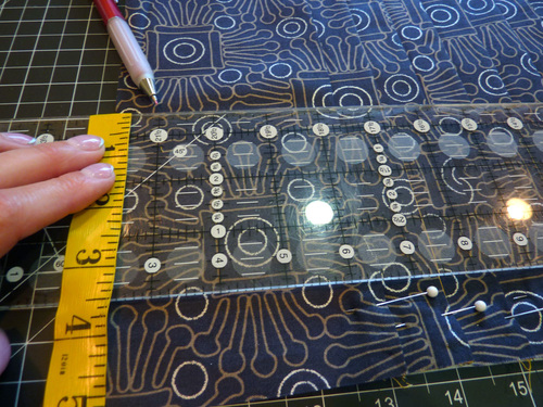 - Measure 5″ from the top raw edge and mark a horizontal line.