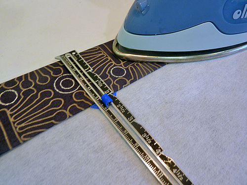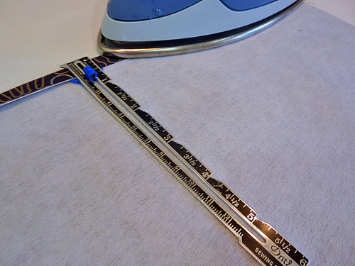 - On one panel, fold back one edge (what will be the inner edge) ½” and press.