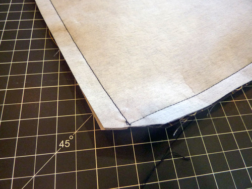 - Using a ½” seam allowance, stitch around all four sides of the pillow, pivoting at all the corners. Clip the corners.