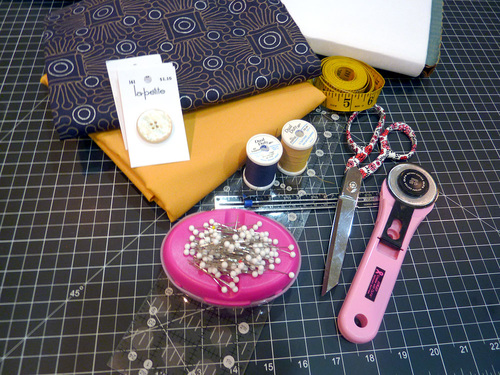 NOTE: As mentioned above, to get the most dramatic look to your wave tuck pick a print and solid with a good contrast. If the two hues are too close in tone, the wave effect will be difficult to see. - 1½ yards of 20″ mid to heavy-weight fusible interfacing; we used Pellon’s Fusible Midweight