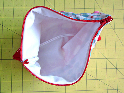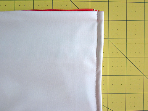 - Turn the case right side out through the zippered opening. Poke out those bottom corners again… carefully. And you have a lovely French seam for a clean inside finish.