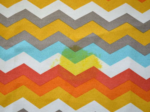 We then hand washed the stained portions of the fabric with mild soap and lukewarm water. After air drying, the fabric looked like this.