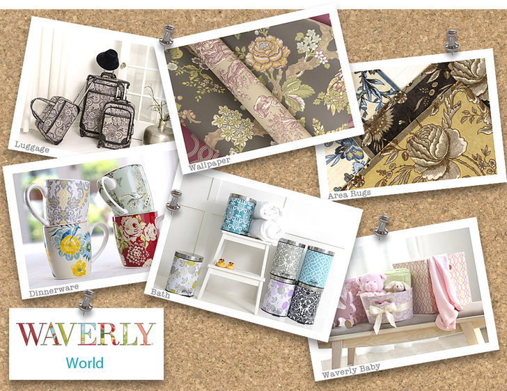 In addition to home décor, Waverly makes a wide range of accessories with the same designs. They’ve brought their signature look into countless classic styles in home furnishing products; including fabrics, wall coverings, bedding, window treatments, bath and table linens, decorative accessories and other key products. So your coffee mug, iPad® case, even your luggage and gardening shears, can all be part of your Waverly World.