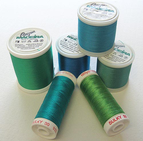 Rayon thread is a lot like polyester; it has a nice sheen and is very strong. It’s also available in a wide range of colors.