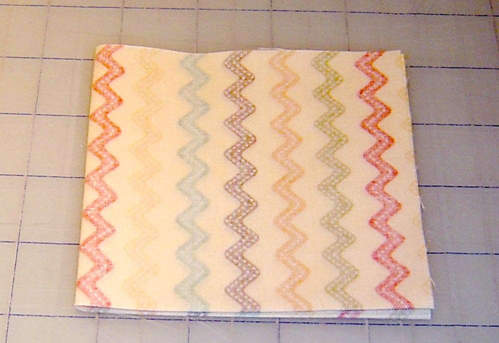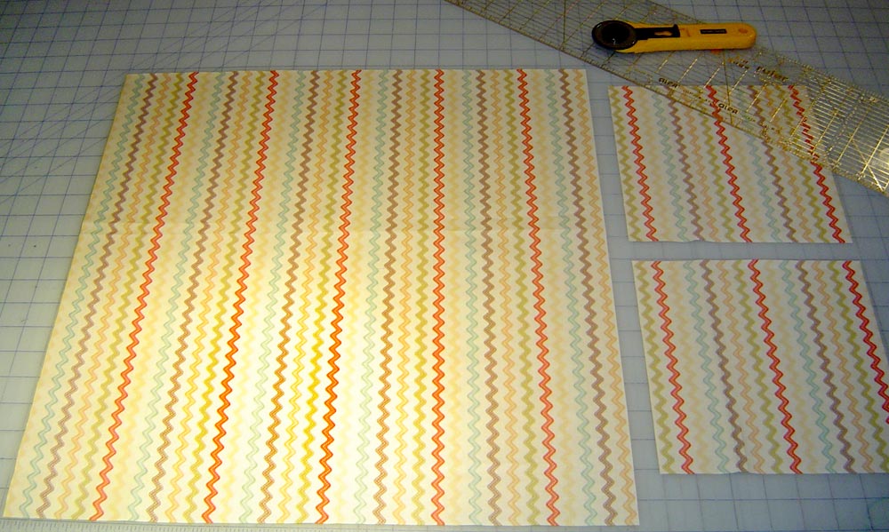 - Cut two 8” x 8” squares from the fabric for the ends (Joanna Figueroa’s Whimsy in our sample) .