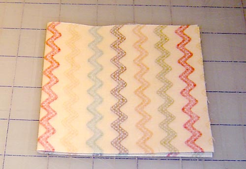 - Pin the ric rac to each 19½” side of the pillow body, ½” from the raw edge, on the right side of the fabric.