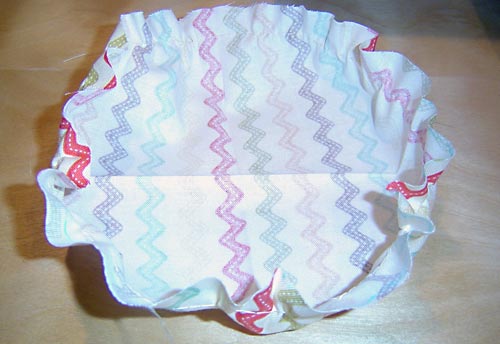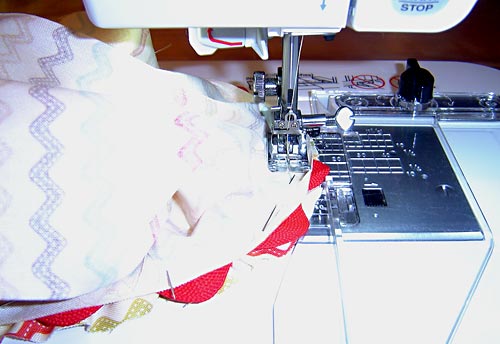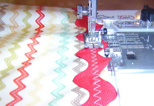 - Using a zigzag stitch, baste the jumbo ric rac in place.