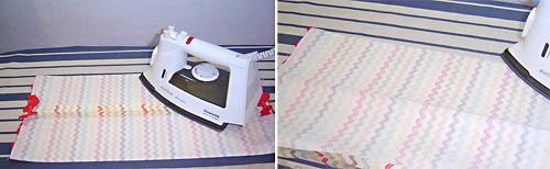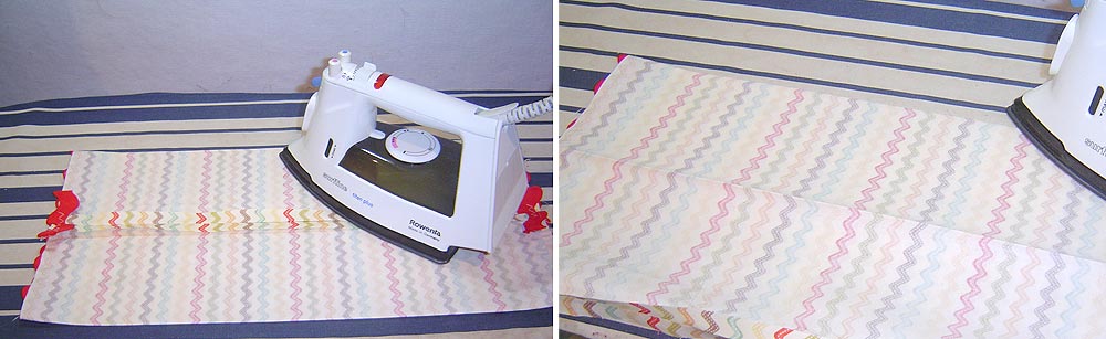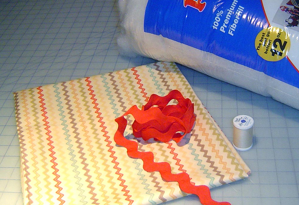 NOTE: We used the same fabric for the main pillow body and the ends, simply changing the direction of the ric rac to add variety. You could vary the project by choosing two coordinating fabrics for your neckroll.