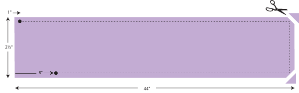 - Repeat to create the second tie, but remember… it needs to be a mirror image of the first tie. Mark the dots 1″ in from the top right corner and 8″ in from the bottom right corner.