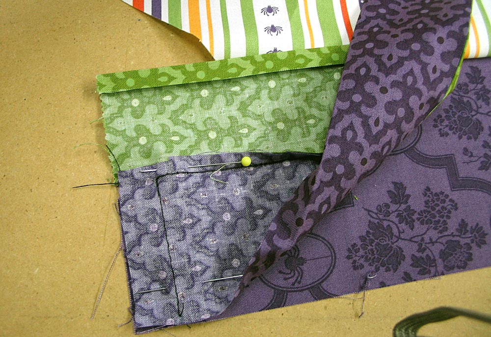 - Edgestitch the pockets in place along both sides and across the bottom, pivoting at the corners.