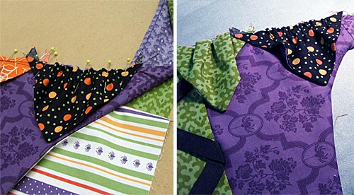 - The final step in creating the apron top is to attach the flounce to the bottom front of the apron.