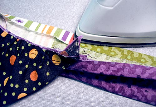 - Mix and match the strips for the waist ties so you have different colors on the front and back of the ties. We used green for the back and purple for the front.