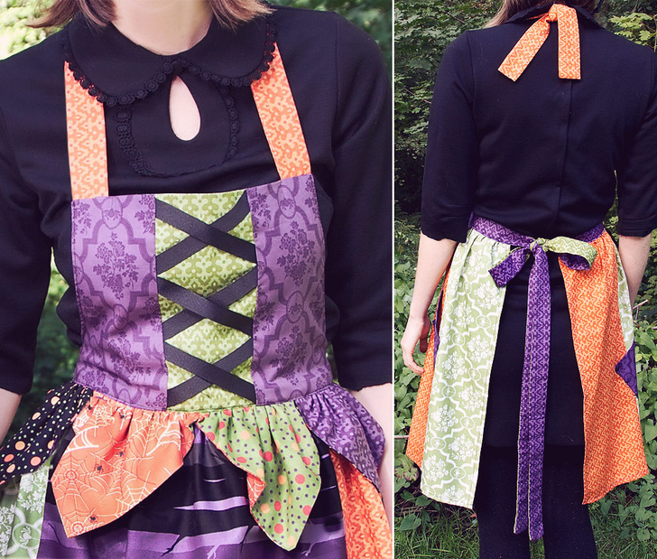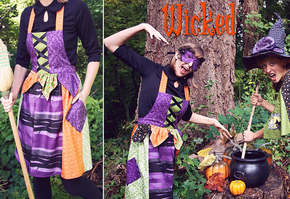 It’s coming up on Halloween season and costume shops have started popping up in all sorts of unusual places. Empty store fronts become haunted mansions for a few weeks and then vanish once again. It’s appropriately spooky! They have all sizes and shapes of costumes for kids, and there seems to be endless options for buying and making kiddie costumes online. But… what about the grown-ups? If you don’t want to be a glamorous vampire, a hot nurse, or Fred Flintstone, you’re kinda out of luck. Sometimes, you don’t want to get all decked out; you just want a little something fun to wear to go out trick-or-treating with the kids or to answer the door for the ghosts and ghouls. We think our Wicked Halloween Apron is the perfect choice. It’s fun to make from pre-cuts, and with the faux front lacing, you’ll be the most stylish wicked witch on the block.