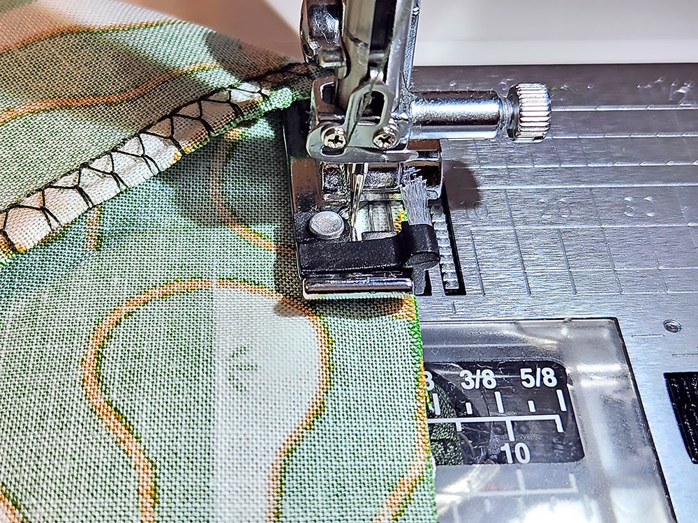 - Using an Overedge foot and an overcasting stitch setting is a fast and easy way to sew and finish your seam allowance in one step, giving you a sewing machine finish similar to a serger finish. You do use a narrower seam allowance of ¼”. To get to our 20” finished height, this meant we started with a main body cut at 40½” rather than 41”.