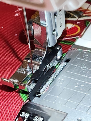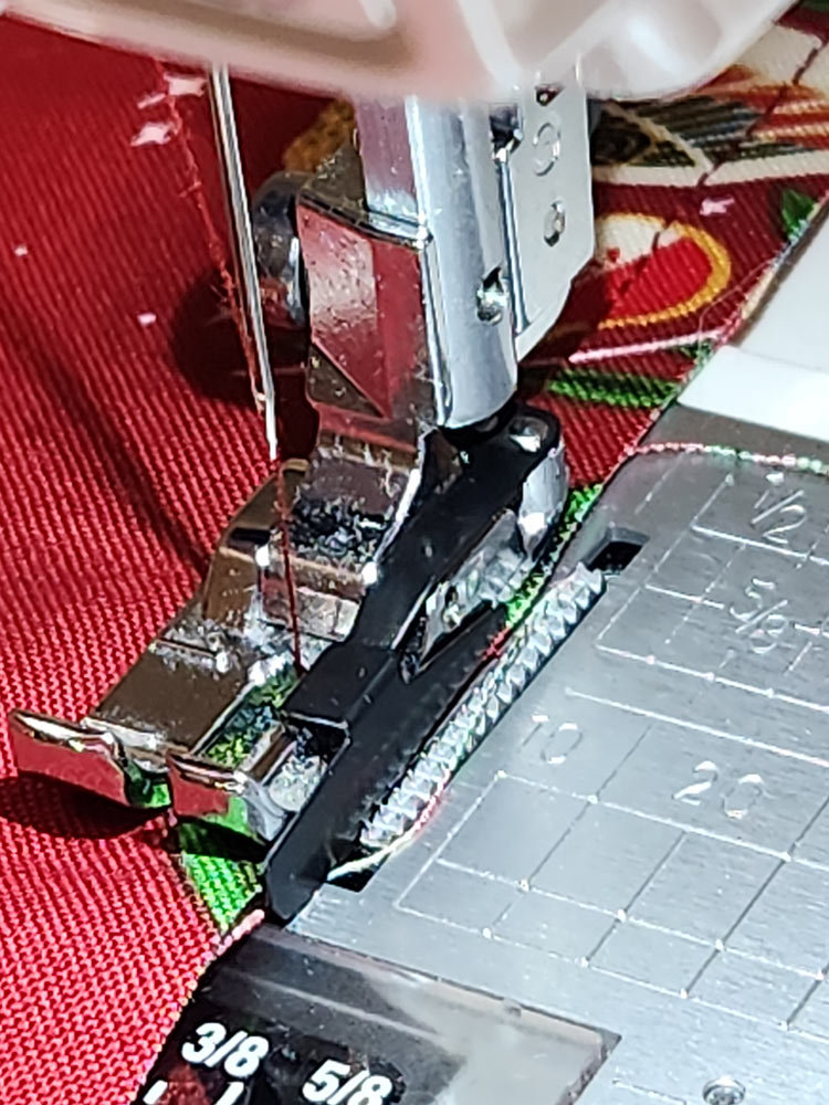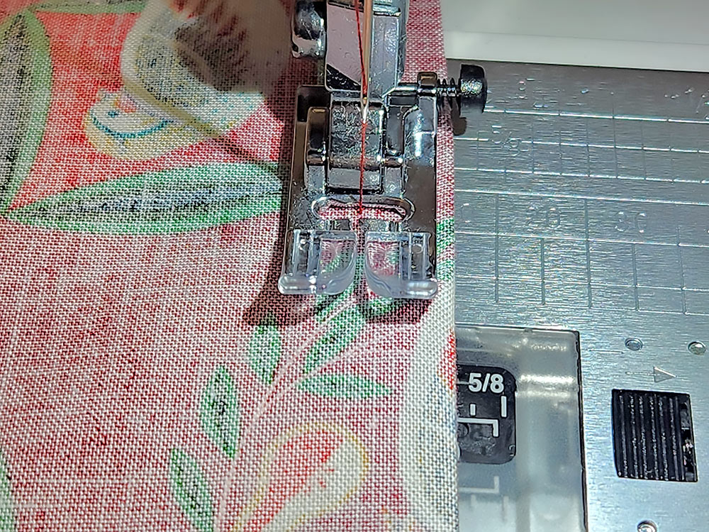 NOTE: Using a ¼” seam allowance insures your basting stays within the final ½” seam allowance. You could certainly switch back to your Quarter Inch Seam foot to keep a precise line of basting all around.