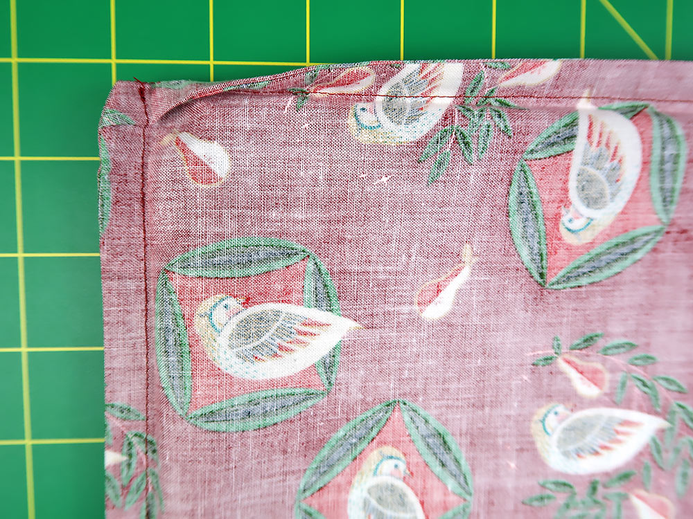 - Repeat the process to stitch the bottom seam. Why in two steps? Because you can’t really create a sharp corner using a pivot with a French seam, but by stitching the side and bottom seams separately, you can create a clean fold on the inside…
