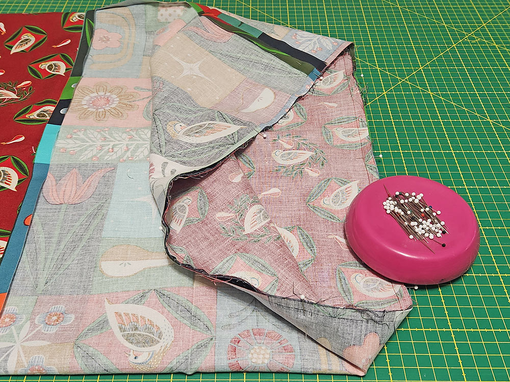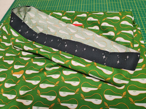 - Press to set seam allowance then turn wrong side out. Make sure the two layers are nice and flat, the top and bottom raw edges are flush, and the previous seam is running straight along the edge.