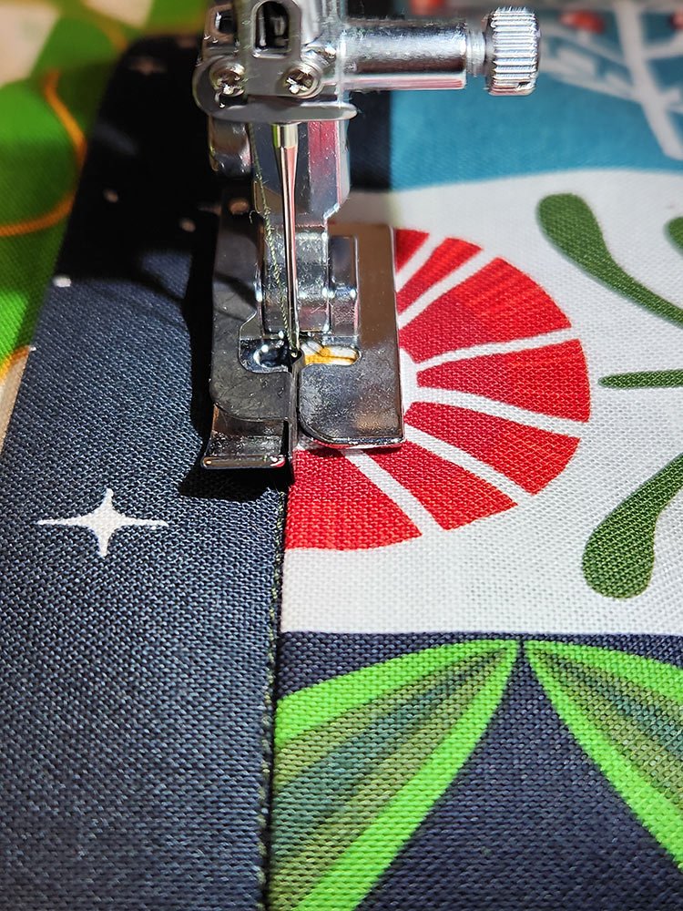 - Using a Quarter Inch Seam foot, stitch the length of the side.